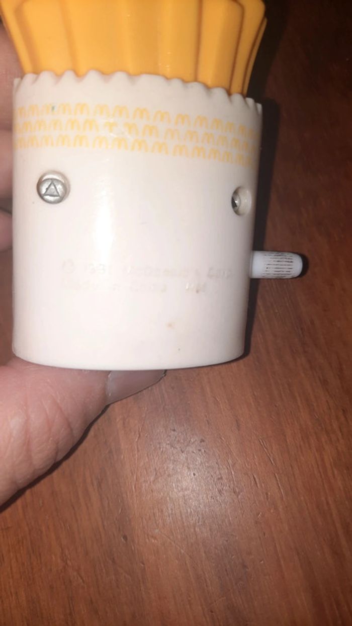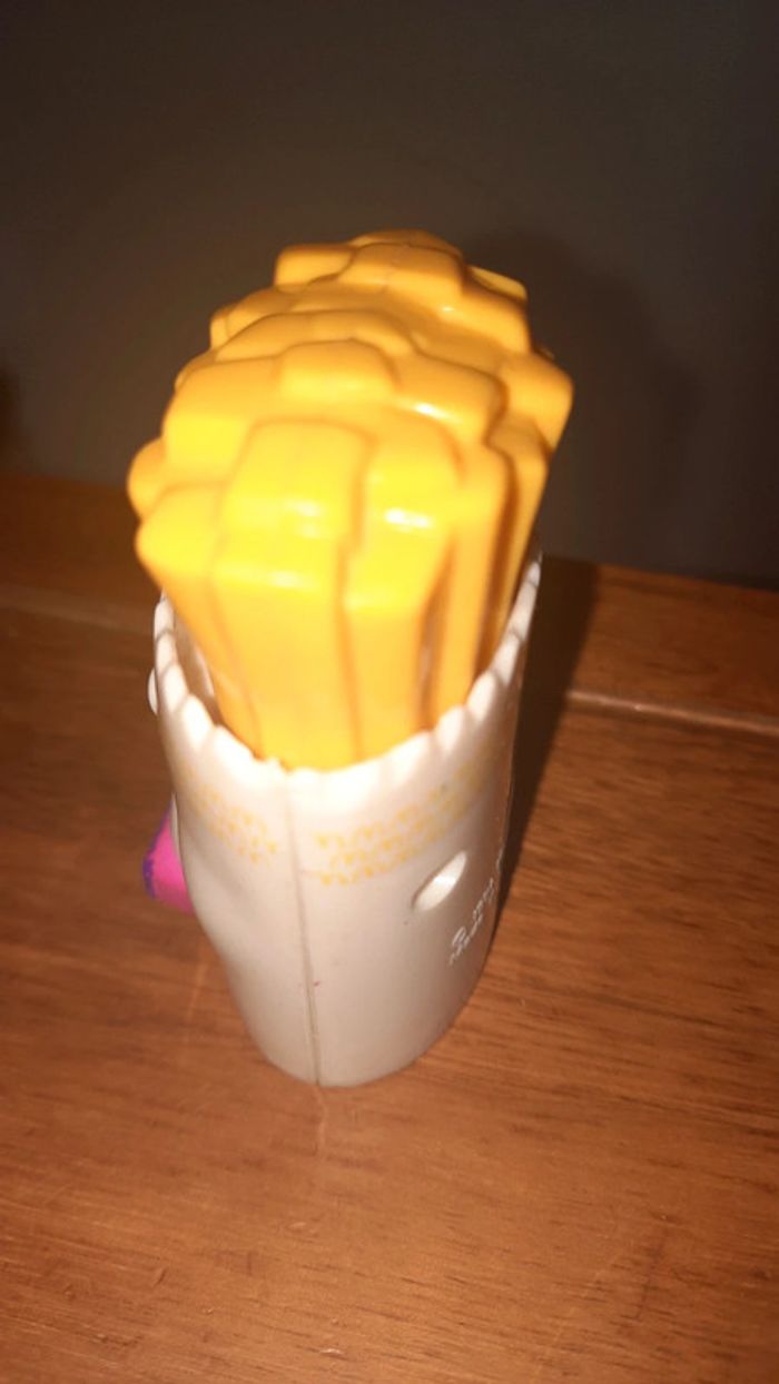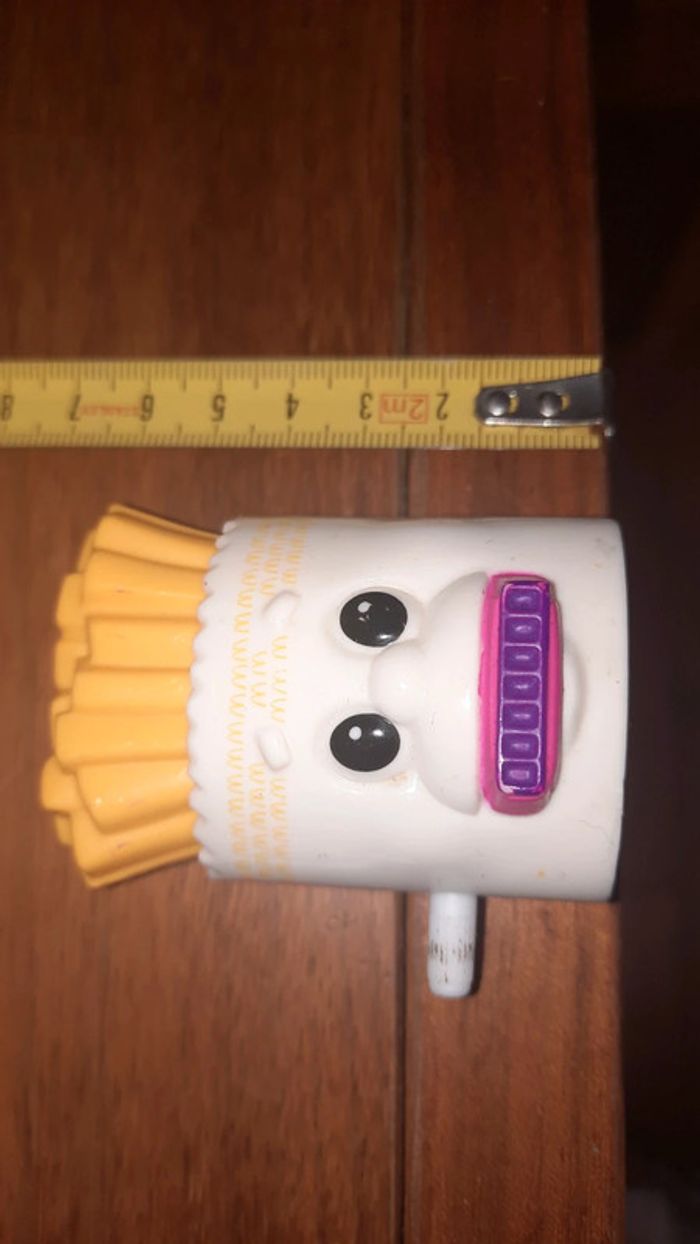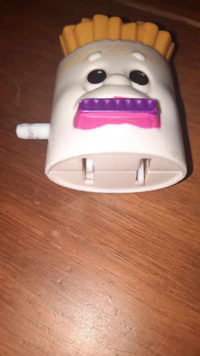 Jouet vintage 1991 Venant de Mac donald Représentant un paquet de frites 🍟 qui avance tout doucement après avoir tourné la molette Présence de traces d usure et d utilisations #vintage