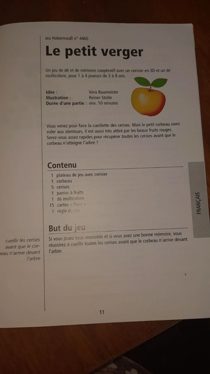 Jeu de societe de chez Haba Le petit verger Complet avec règles du jeu Présence de défauts : couvercle du dessus abimé ainsi que l anse du panier #ValandreJeu