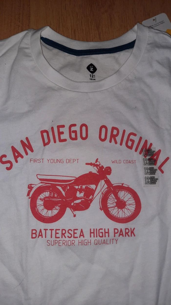 Tee shirt mc 12 ans Blanc avec Sérigraphie thème moto dans les tons rouges. Encore étiqueté Marque Z #Valandre12Ans