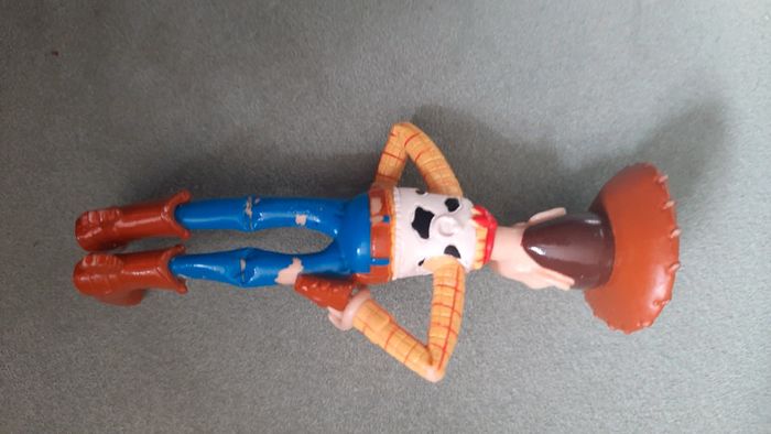 Figurine représentant Woody du dessin animé Toy Story Couleurs défaites par endroit au dos de la figurine cf photo #ValandreDisney #ValandreJouet