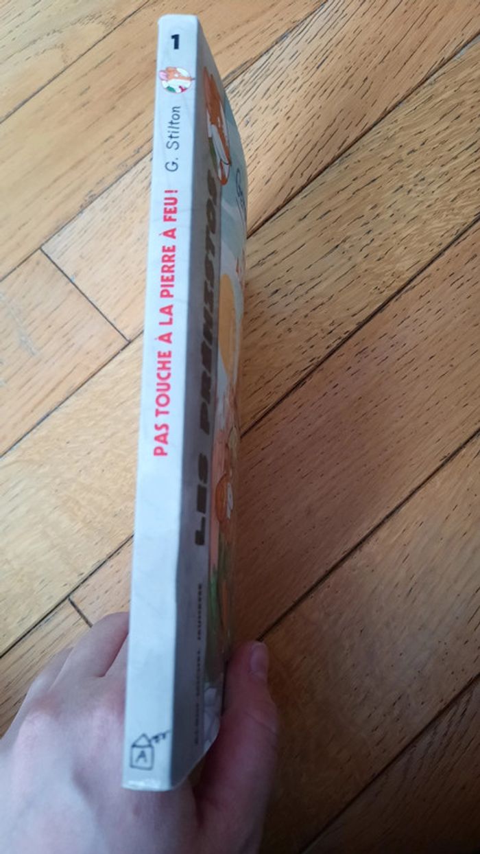 Livre Géronimo Stilton Les prehistos Pas touche à Pierre à feu Bon etat légèrement abimé au coin devant en bas a droite