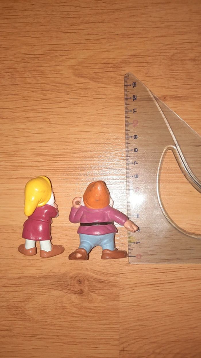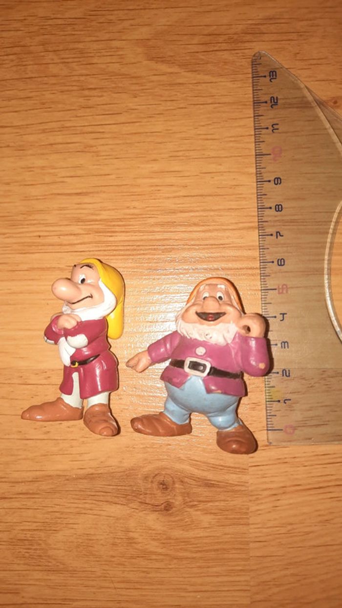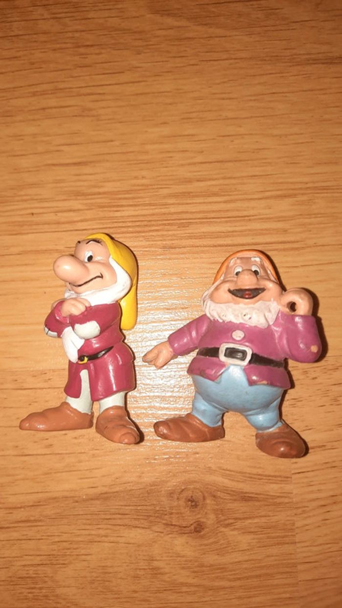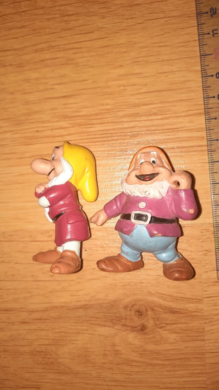 Lot de nains issus de la blanche neige Sur celui de gauche il est écrit euro disney Et celui de droite bullyland disney Présence de traces #ValandreJouet #ValandreDisney