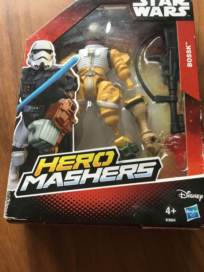 Jouet super hero Mashers star wars Bossk Boite jamais ouvert ayant cervî de deco Abîmé sur les côtes devant de la boite Cf photo