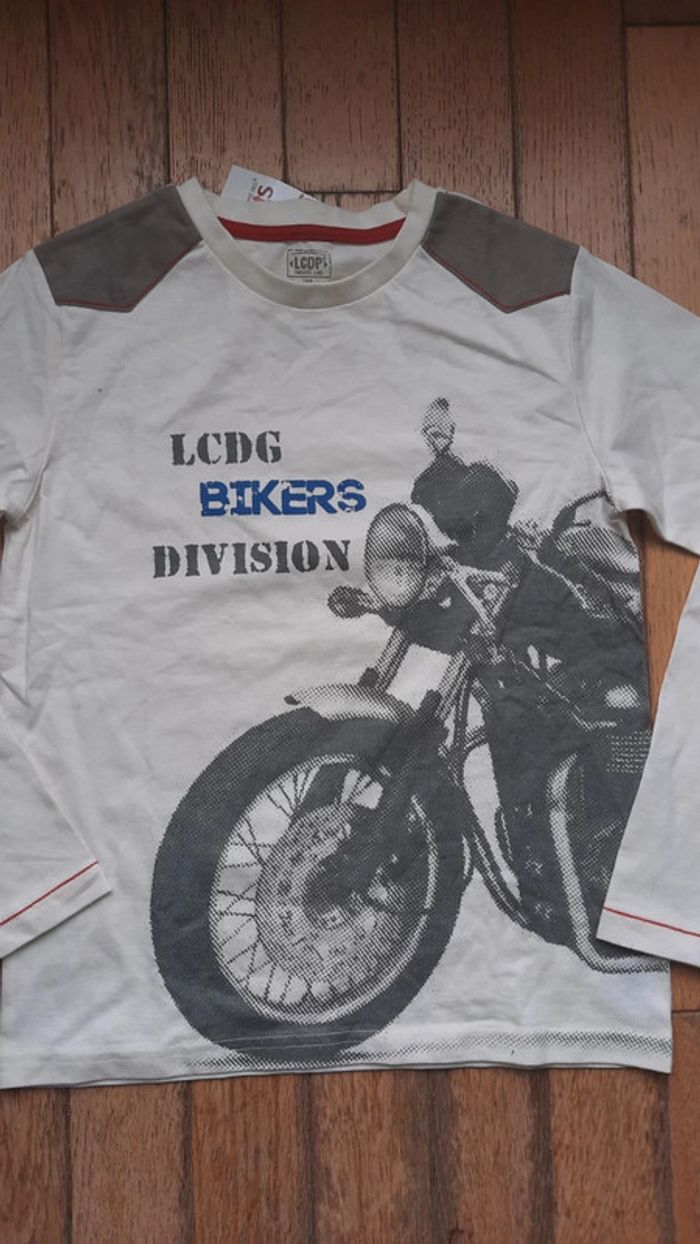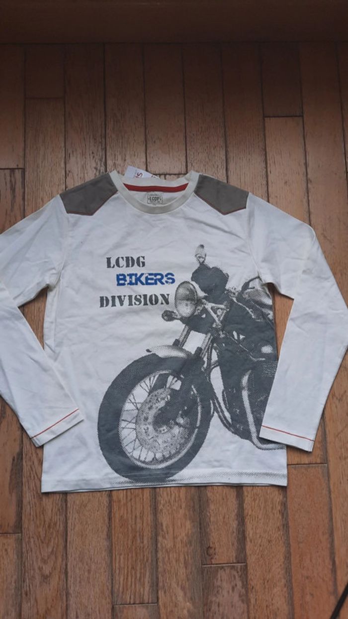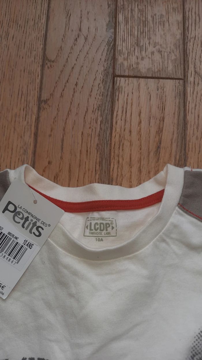 Tee shirt blanc crème LCDP la compagnie des petits Taile 10 ans Avec dessin theme moto Neuf encore étiqueté #Valandre10ans