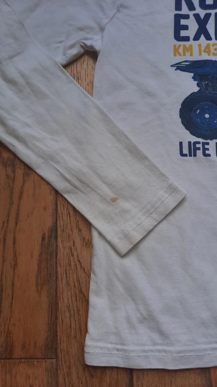Tee shirt blanc okaidi Taille 10 ans État satisfaisant car défaut Manche droite taches devant et derrière #Valandre10ans
