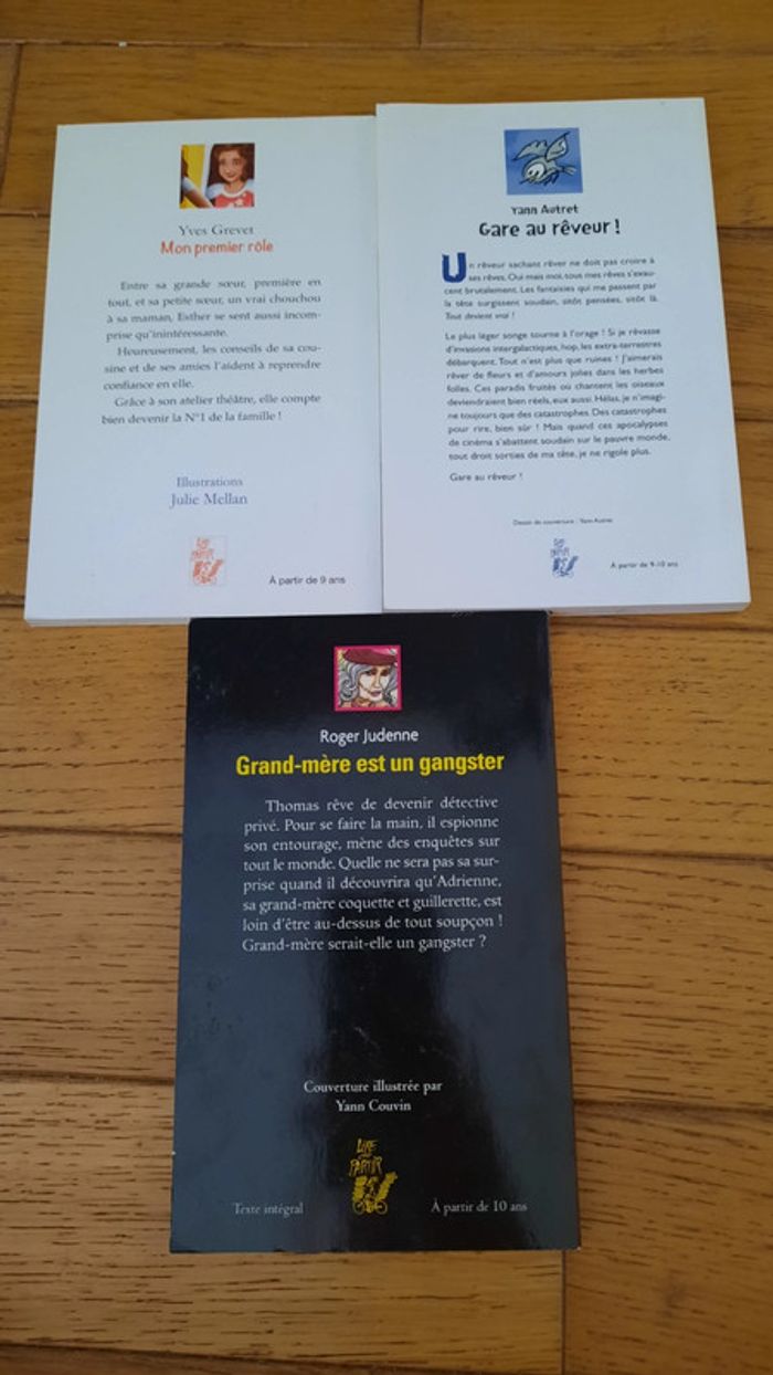 Livre des éditions lire c est partir Neuf jamais lu Gare au reveur à partir de 9/10 ans Mon premier rôle a partir de 9 ans Grand mère est un gangster a partir de 10 ans