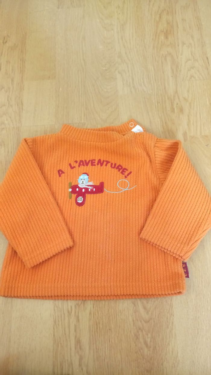 Pull polaire de couleur orange avec dessin brodé bon état
