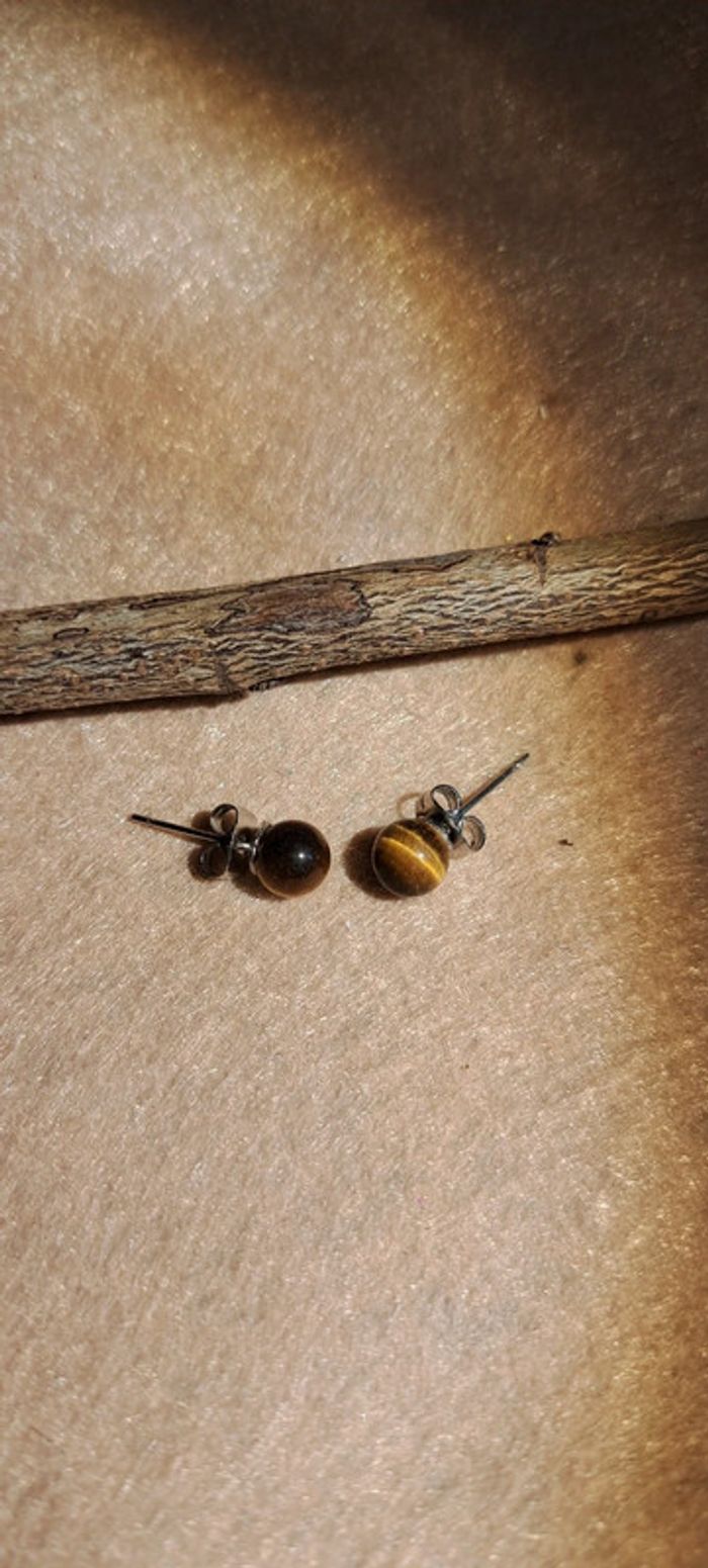 Boucles d'oreilles oeil de tigre lithotherapie - photo numéro 2