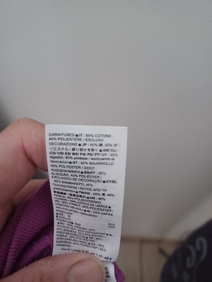 Très beau pull avec une petite tache qui ne se voi pas au bras voir photo mais à par sa il est niquel 60 % coton et 40 % polyester