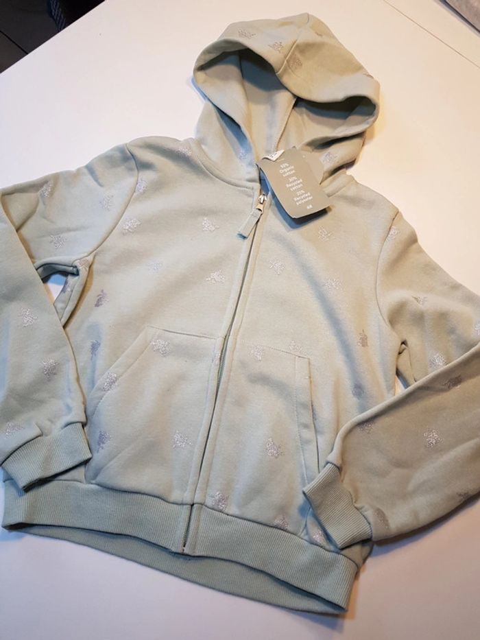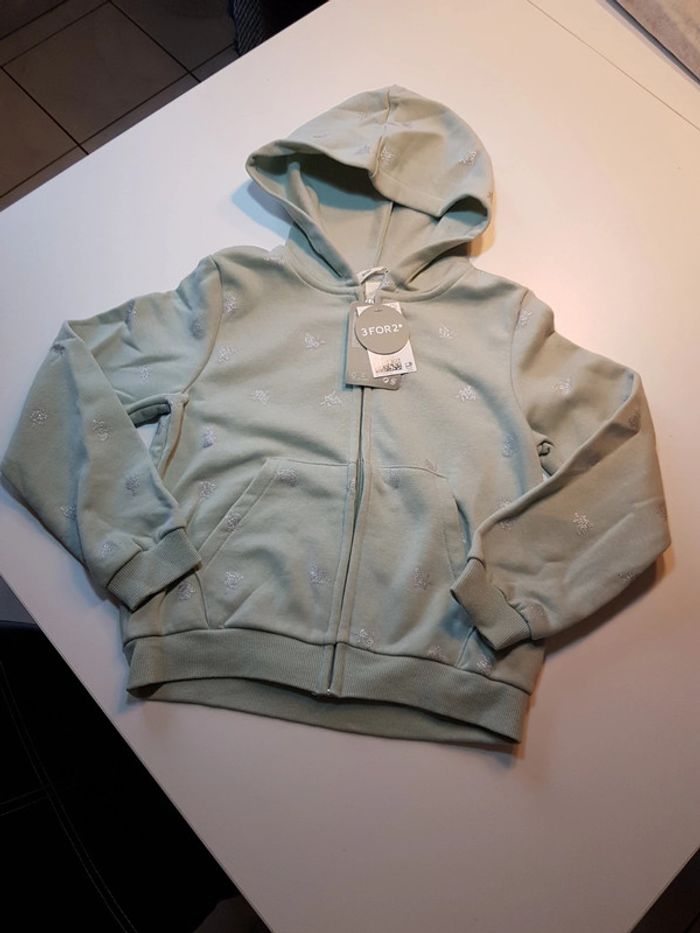 Vend sweat capuche fermeture zippé Vert pastel Dessin lapin