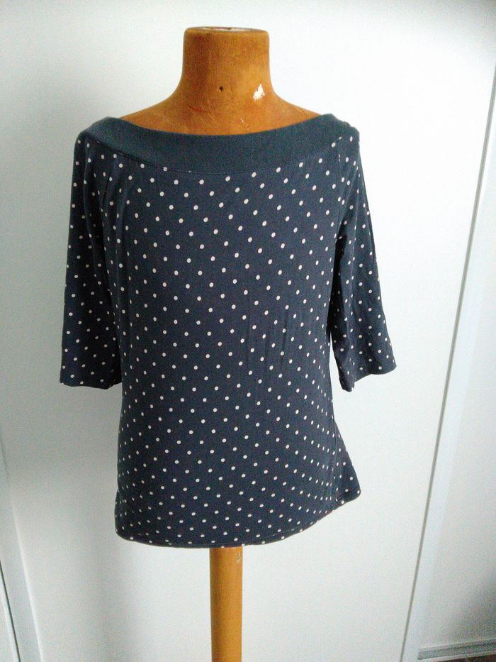 T-shirt bleu marine à pois 36/38 Cache Cache