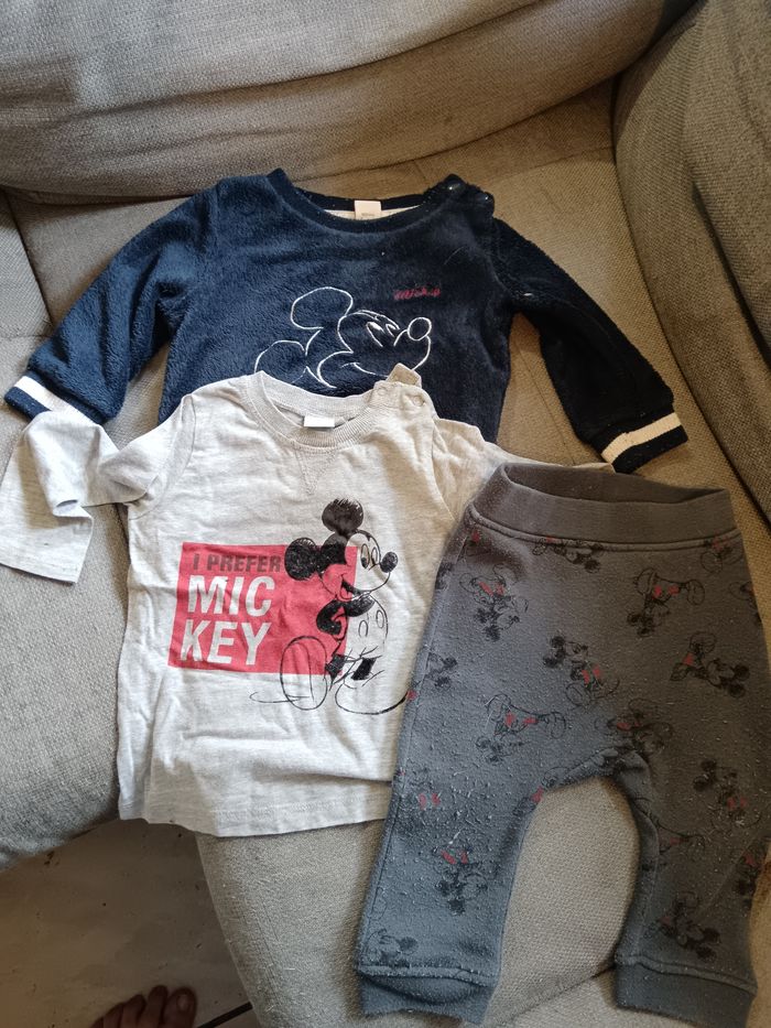 Un pull un t-shirt un pantalon de la marque Disney en 12 mois 6 € le tout possible de le vendre à l'unité à 2 € pièce