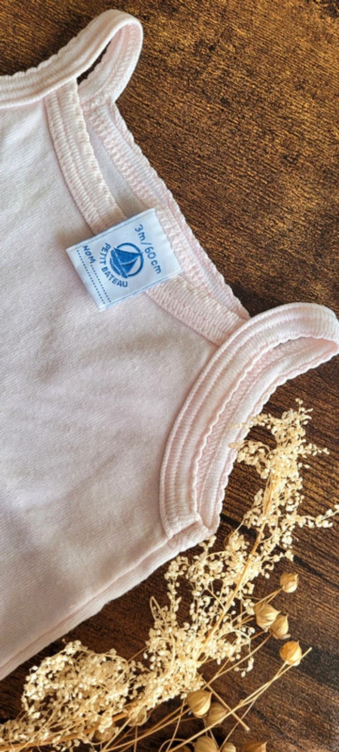Body rose pâle fines bretelles Petit Bateau 3 Mois En très bon état, porté 2 ou 3 fois. Maison non fumeur et sans animaux Envoi rapide et soigné