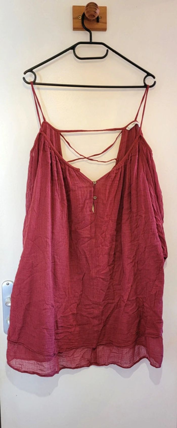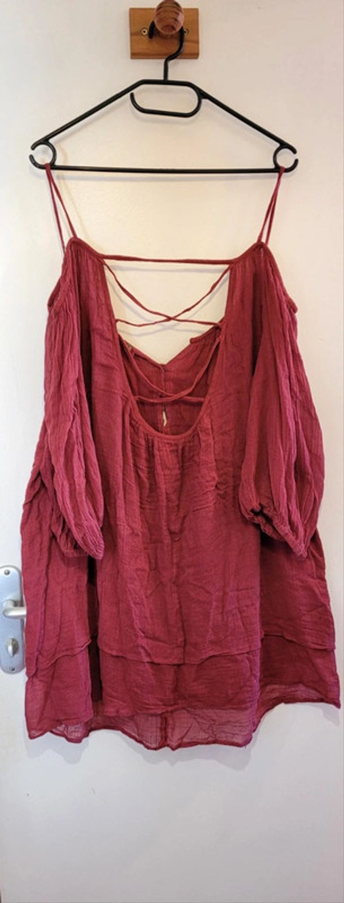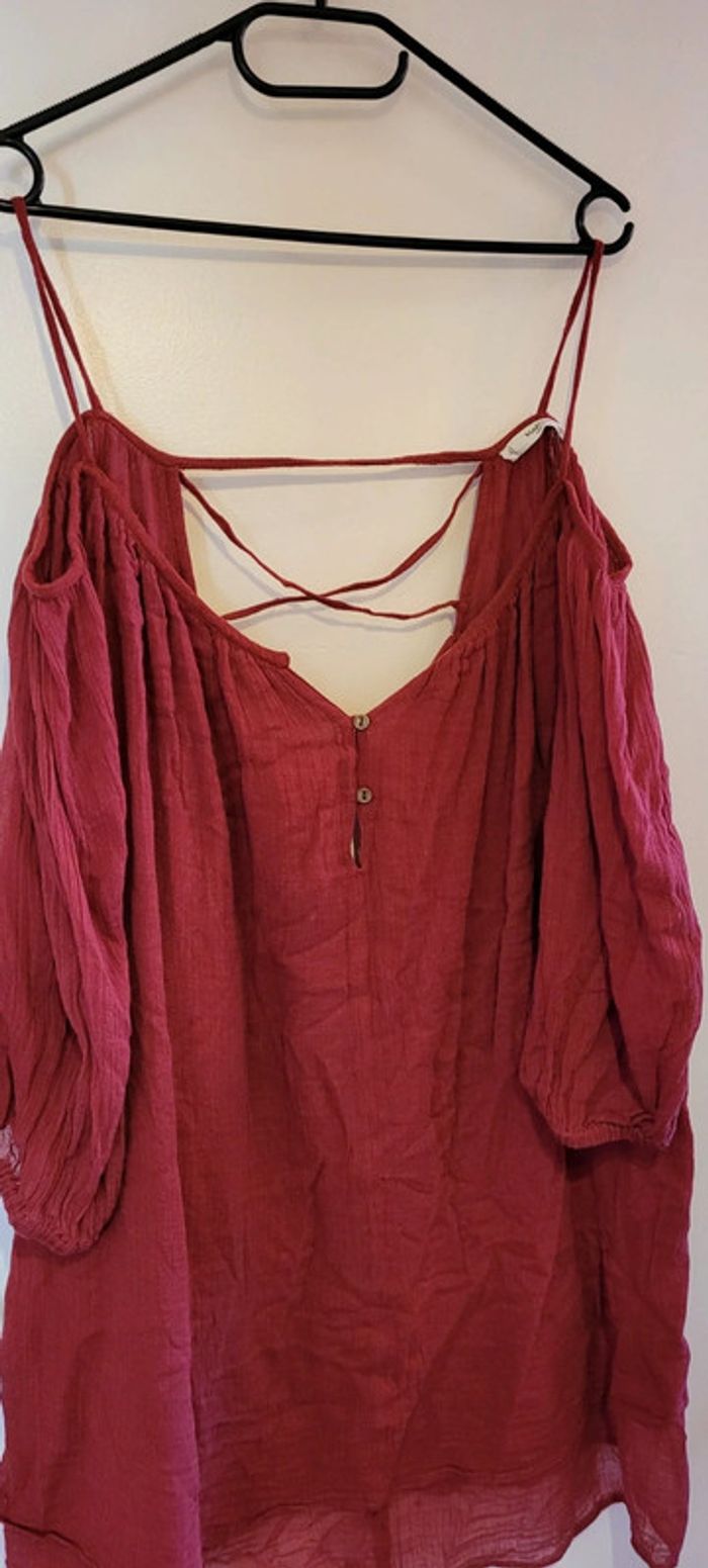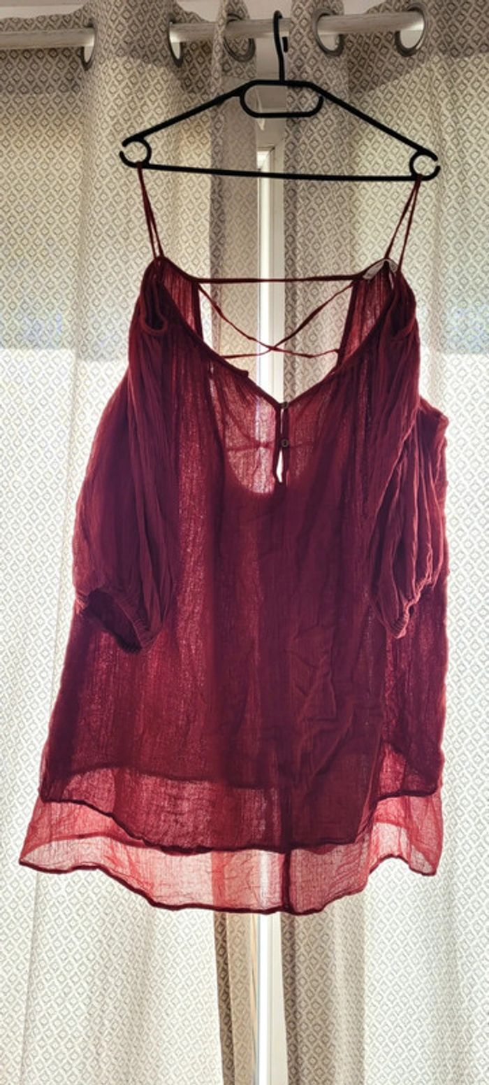 Jolie tunique / robe courte, rouge/bordeaux. Dos nus croisé et épaules dénudées. Marque Mango Taille L Très peu porté, en très bon état général.