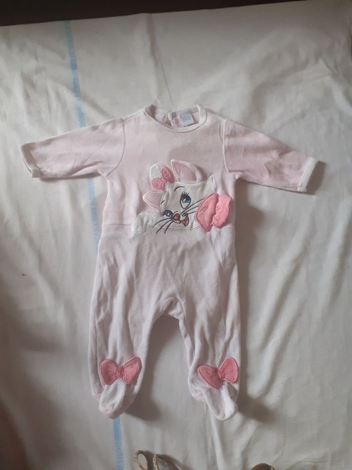 Babygros rose et blanc motif Aristochat et petits noeuds roses en relief 3 mois