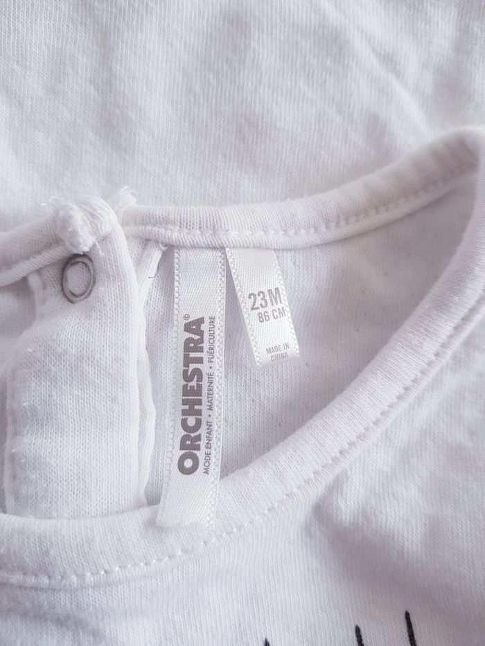 Tous mes articles Orchestra : #orchestrasev Tous mes tee-shirts : #tshirtsev Tous mes habits fille 18 mois : #18moissevfille Tous mes habits fille 2 ans : #2anssevfille Tee-shirt épais à longues manches Marque : ORCHESTRA Couleur : blanc Taille : 23 mois - 86 cm État : très bon état Étiquette des matières découpée Retrait sur place ou envoi.