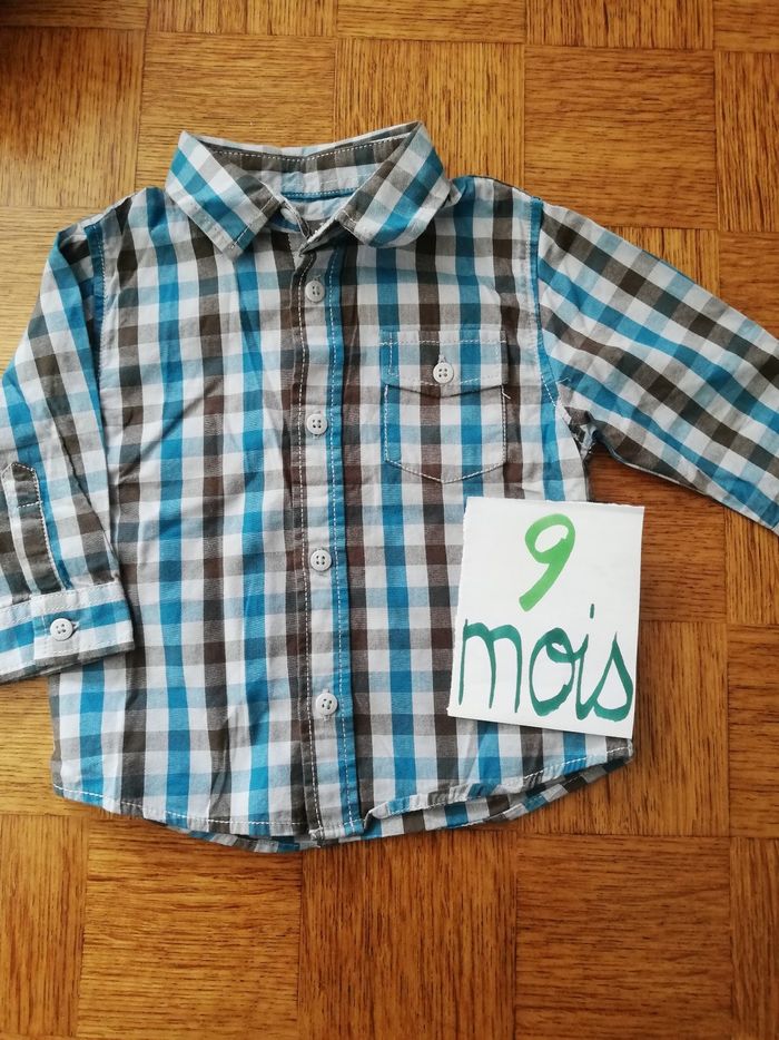 Chemisier à carreaux bleu et marron garçon 9 mois kitchoun - photo numéro 1
