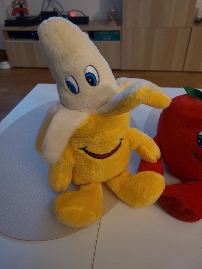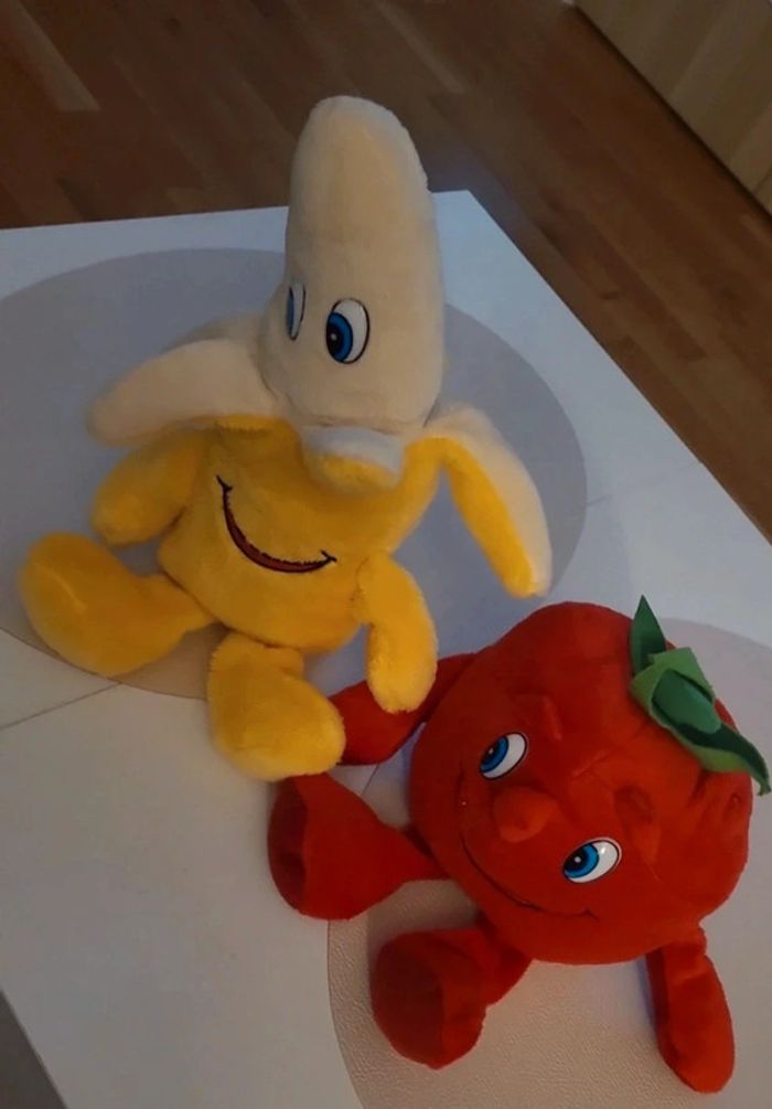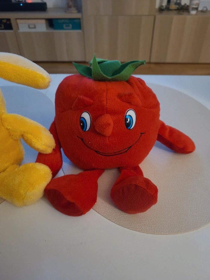 1 peluche tomate 🍅 28cm 1 peluche banane 🍌 34cm Série Fruits et Légumes de Lidl