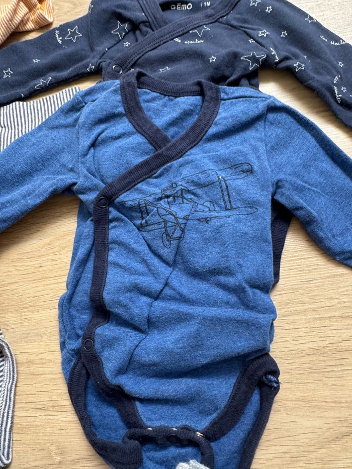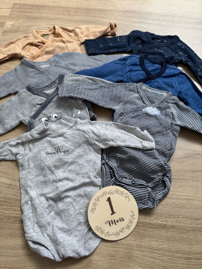 Lot de 7 bodys garçons Marques diverses Taille 1 mois En très bon état 0,75€/pièce soit 5,25