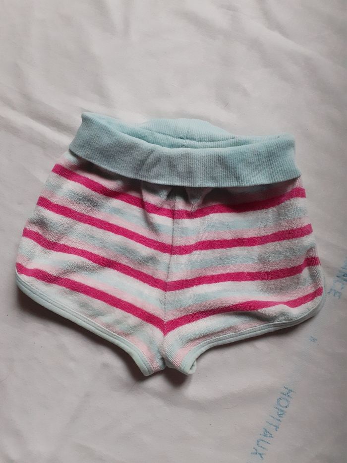 Short en mousse rayé framboise, rose blanc et bleu clair 9 mois