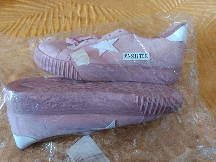 Baskets couleur vieux rose avec une étoile blanche. Neuve, taille 36