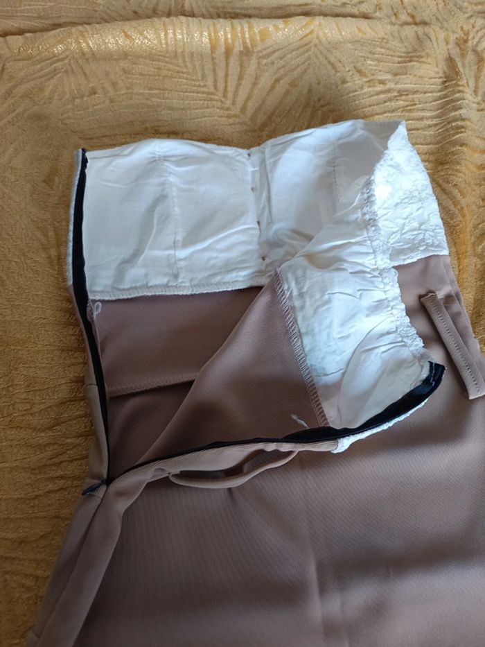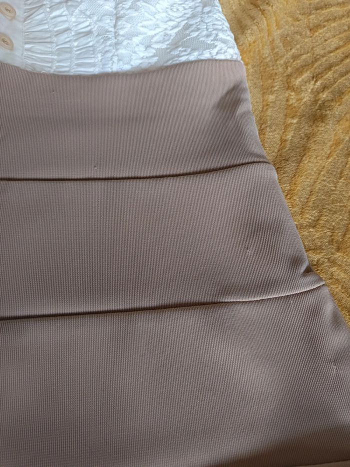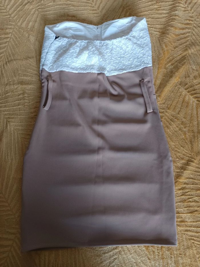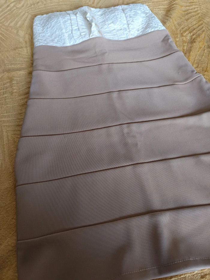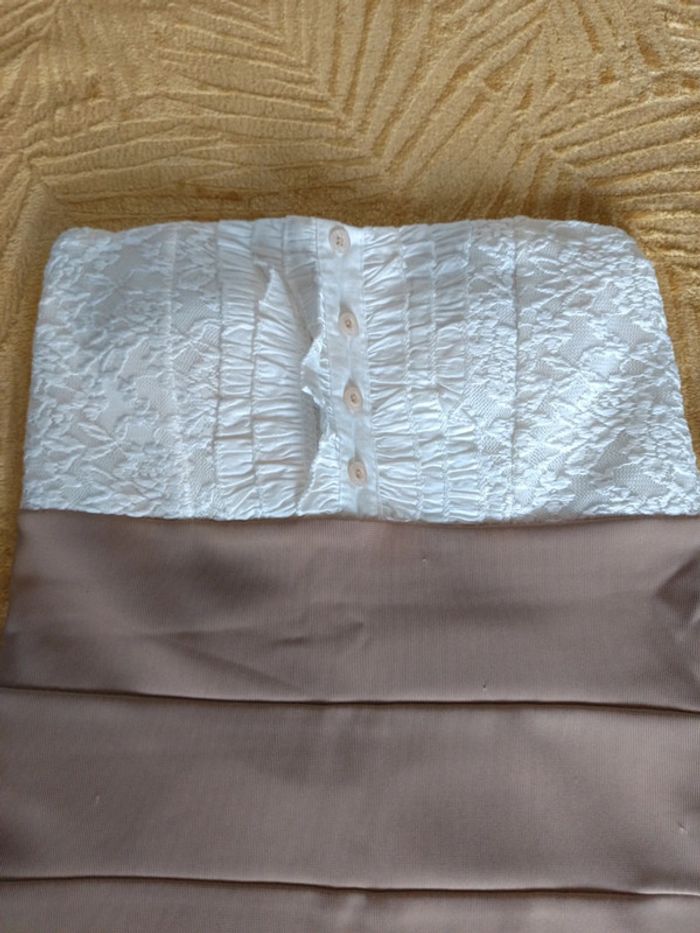 Robe bustier beige à dentelle blanche Taille S En très bon état juste quelques petits accros (voir la 4 ème et la 5 ème photo)