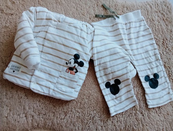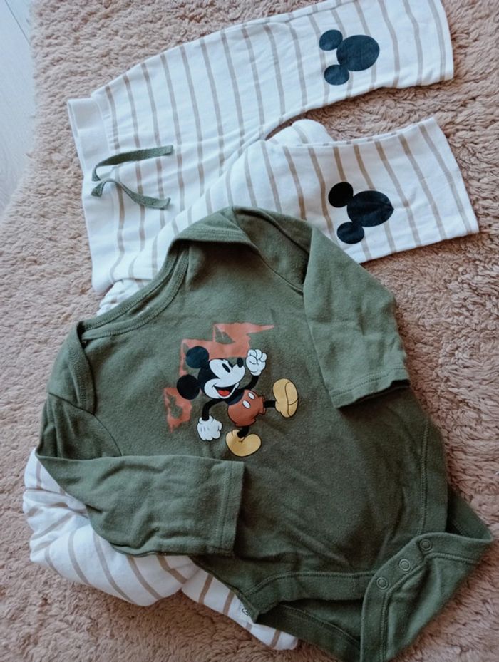 Ensemble décontracté pour bébé taille 6mois. Composé d'un bodie, un pantalon et une veste épaisse chaude. Marque Disney Primark en très bon état.