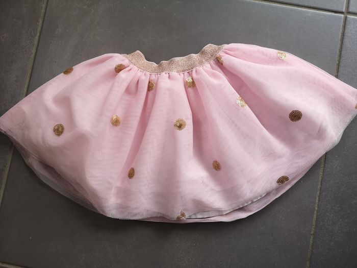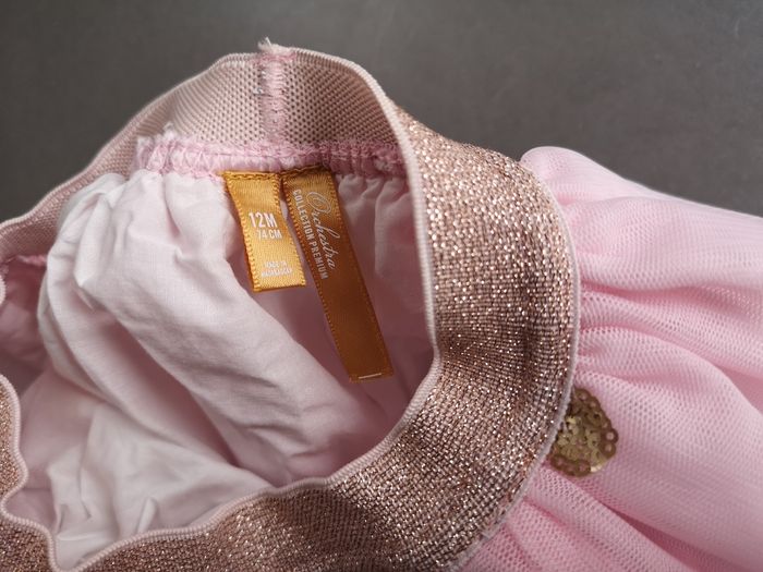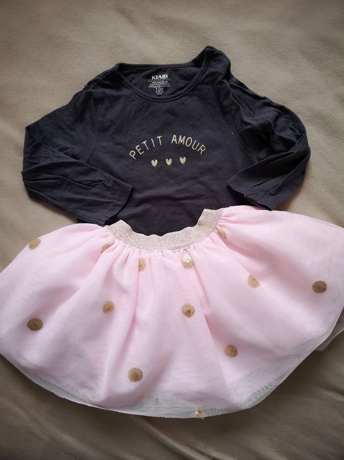 Jupe en tule rose et or (obaibi premium) T-shirt manches longues anthracite et or (Kiabi)