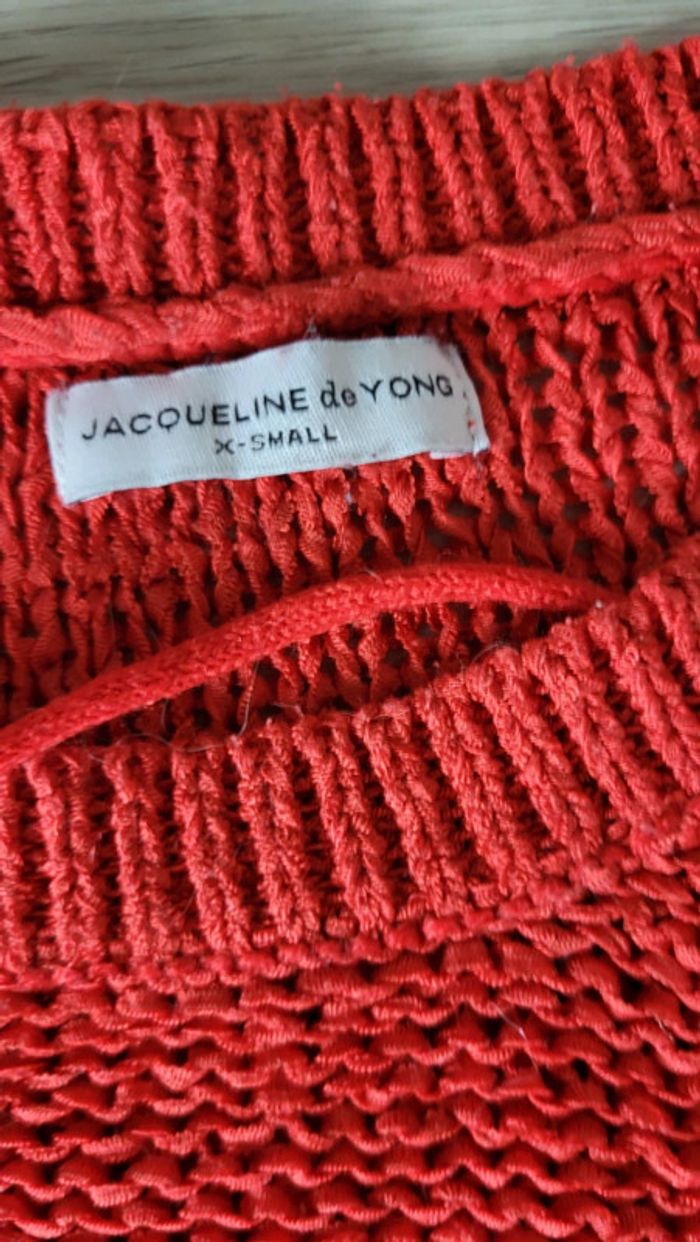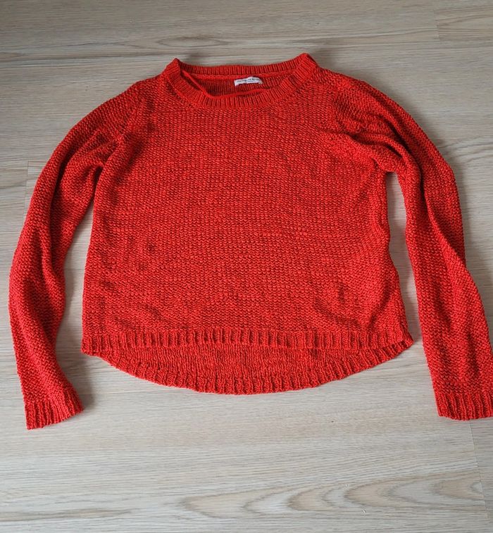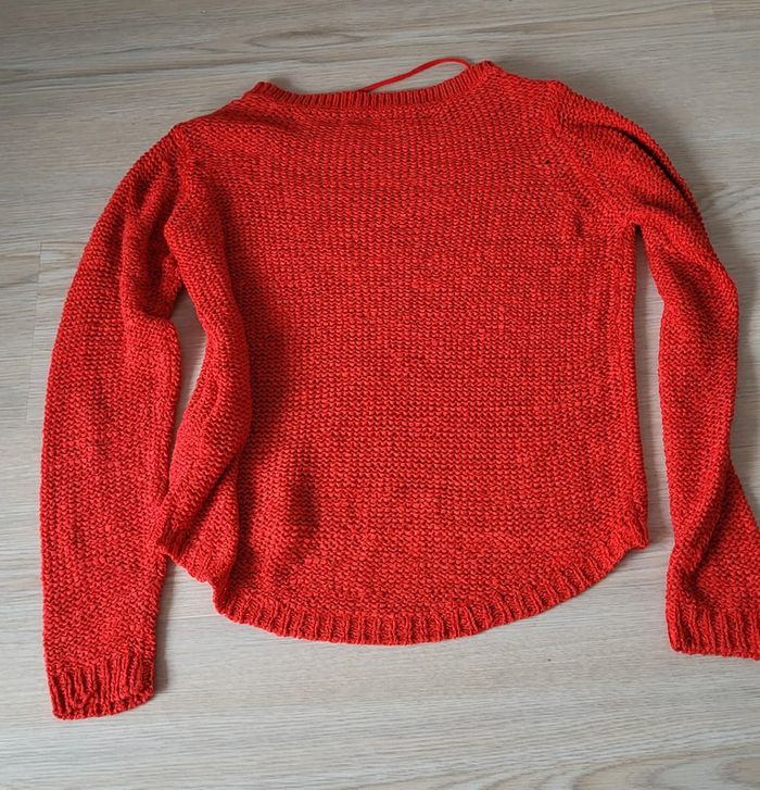 Vends pull rouge en mailes. Petits défauts visibles sur la photo