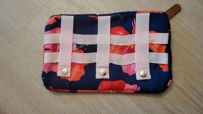 Vends grande pochette taille L pour le devant des sacs cabaia, couleur bleue avec fleurs roses. Modèle Hanoï