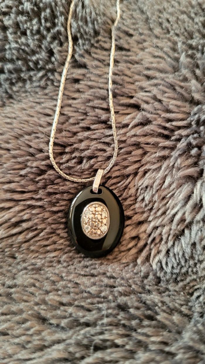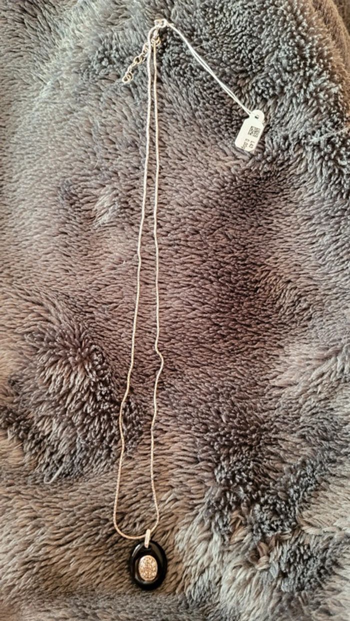 Vends collier argent rhodié ovale shine noir Jamais porté Vient de la bijouterie manège à bijoux leclerc