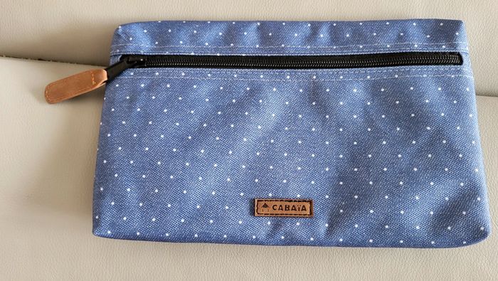 Vends grande pochette bleue à pois blancs cabaia jamais servie
