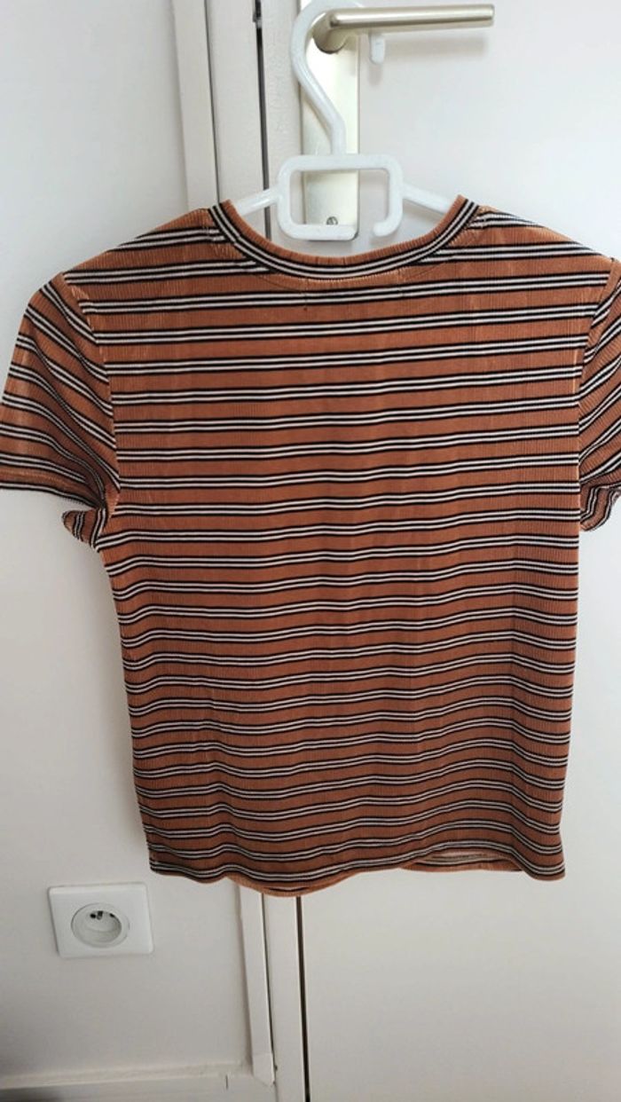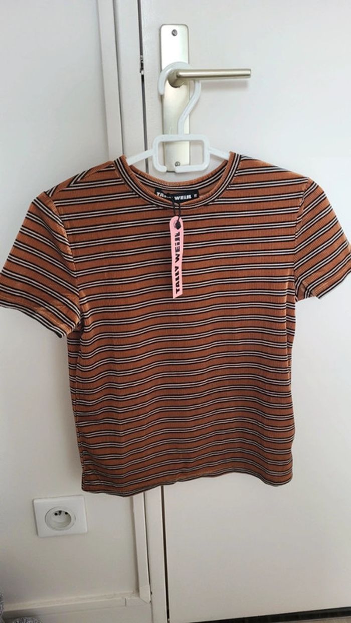 Vends tee-shirt marron rayé noir et blanc neuf avec étiquette Jamais porté En velours Taille XS