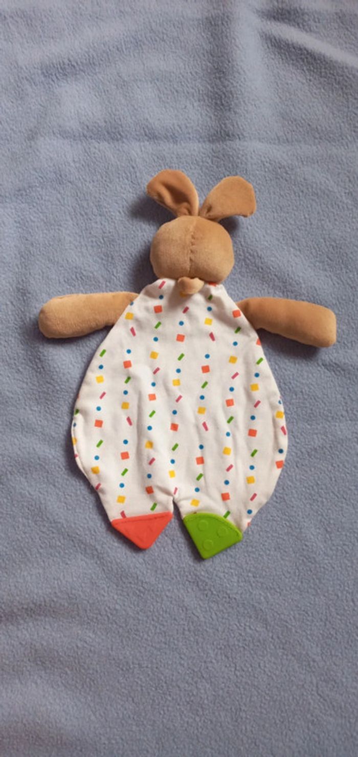 Très beau doudou plat Les pieds du doudou peuvent être mordiller par bébé (plastique mou) Possibilité de l'attachée pour pas le perdre Jamais utilisé mes enfants ont prit d'autre modèle #laury93430doudou #laury93430puericulture #anneauxdedentition #anneauxdentaire