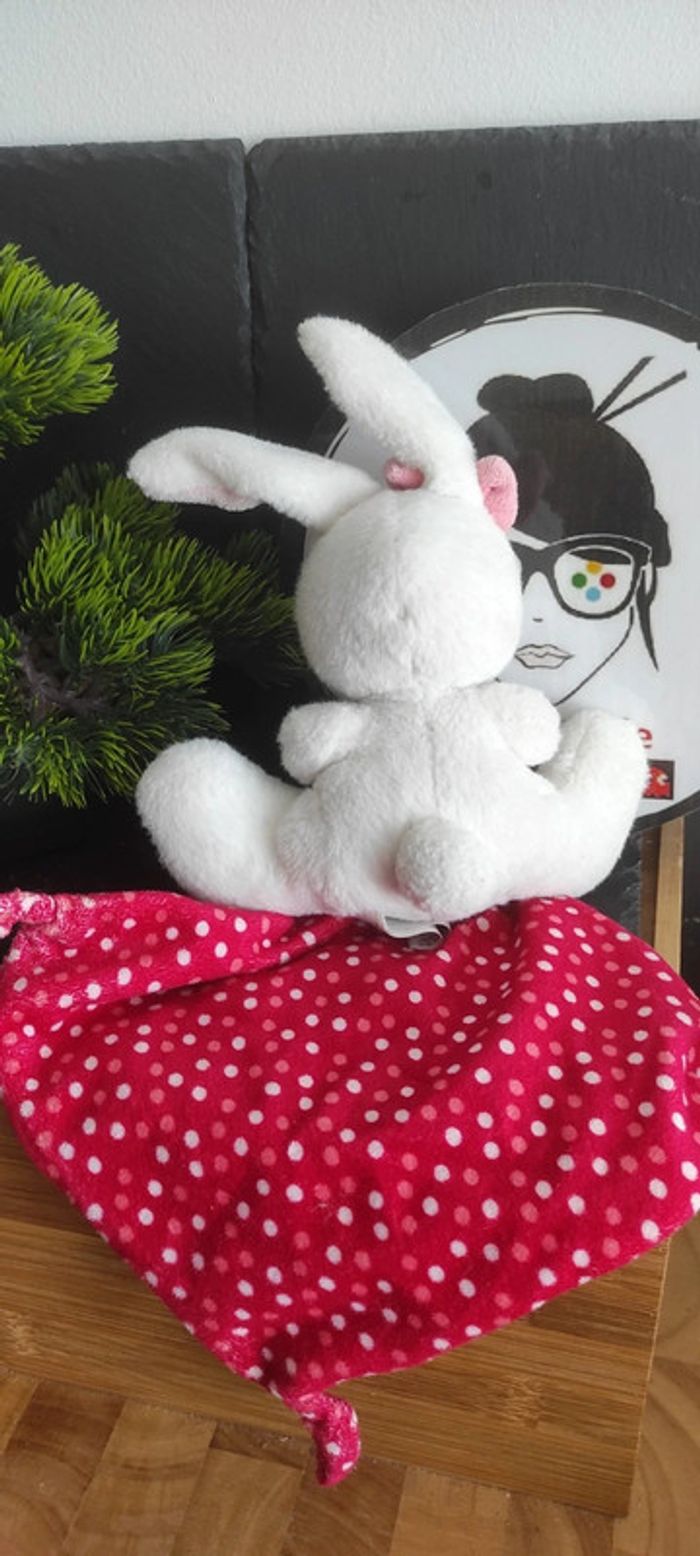 Doudou lapin blanc mouchoir rose Happy night simba toys nuage noeud étoiles Pois - photo numéro 1