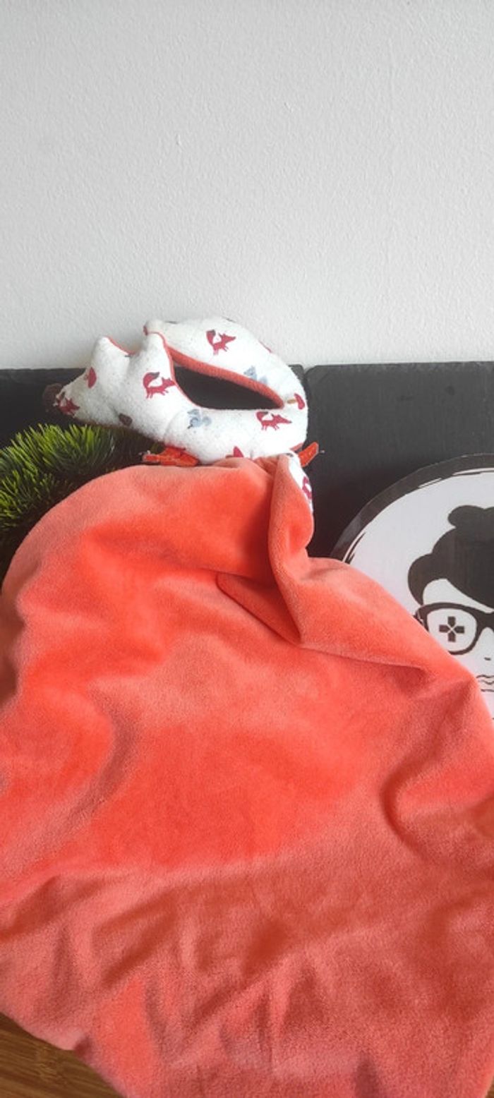 Doudou plat renard vertbaudet écureuil orange grelot rouge champignon pomme pin blanc mouchoir