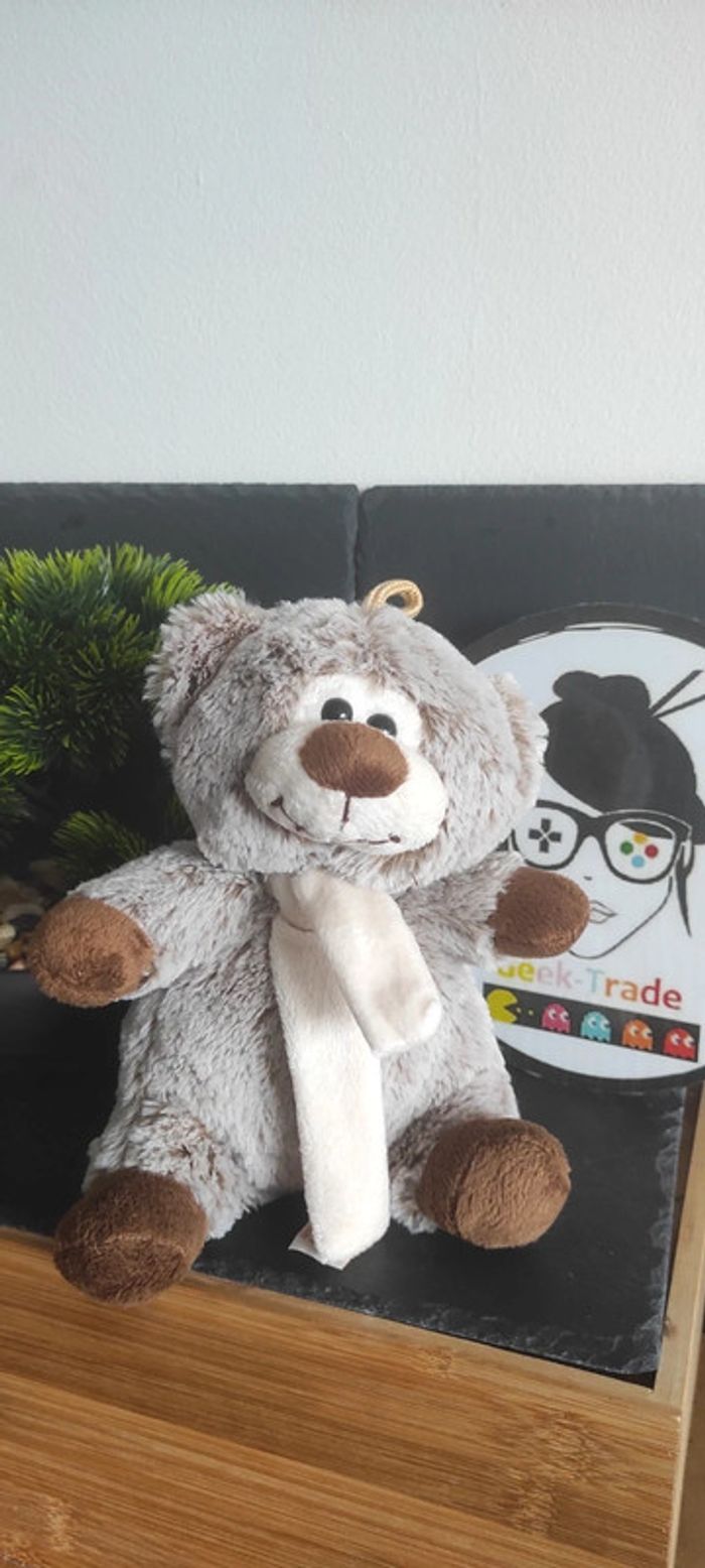 Ours en Peluche Rodadou 18 cm marron gris chiné écharpe blanc DD001179 Bon etat Afin de ne pas abîmer les doudous et de laisser le choix dans l'utilisation de la lessive les peluches ne sont pas lavées avant envoi Description complément : #geektraderodadou Petit nettoyage à prévoir Vous achetez ce que vous voyez les photos font entièrement partie de la description Transport : Les frais de transport comprennent les frais du transporteur ainsi que l'emballage pour protéger au mieux votre achat. Chaque achat est envoyé en format colis avec numéro de suivi Le poids du colis est de 500g finit (je ne peux pas faire moins) il peut donc y avoir plusieurs objets dans le carton si vous le souhaitez (contactez moi afinde grouper les frais de port) Référencement : #geektradedoudou #peluche #plush  #doudou #enfant #bebe