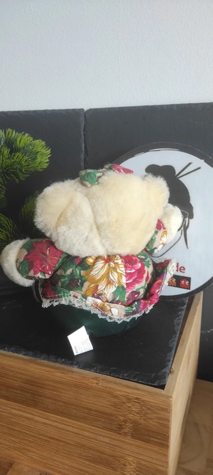 doudou peluche ancien vintage ours robe fleur vert rose beige bonnet dandee PE0101 Bel état Afin de ne pas abîmer les doudous et de laisser le choix dans l'utilisation de la lessive les peluches ne sont pas lavées avant envoi Description complément : Petit nettoyage à prévoir Vous achetez ce que vous voyez les photos font entièrement partie de la description #geektradedandee Transport : Les frais de transport comprennent les frais du transporteur ainsi que l'emballage pour protéger au mieux votre achat. Chaque achat est envoyé en format colis avec numéro de suivi Le poids du colis est de 500g finit (je ne peux pas faire moins) il peut donc y avoir plusieurs objets dans le carton si vous le souhaitez (contactez moi afinde grouper les frais de port) Référencement : #geektradedoudou #peluche #plush  #doudou #en