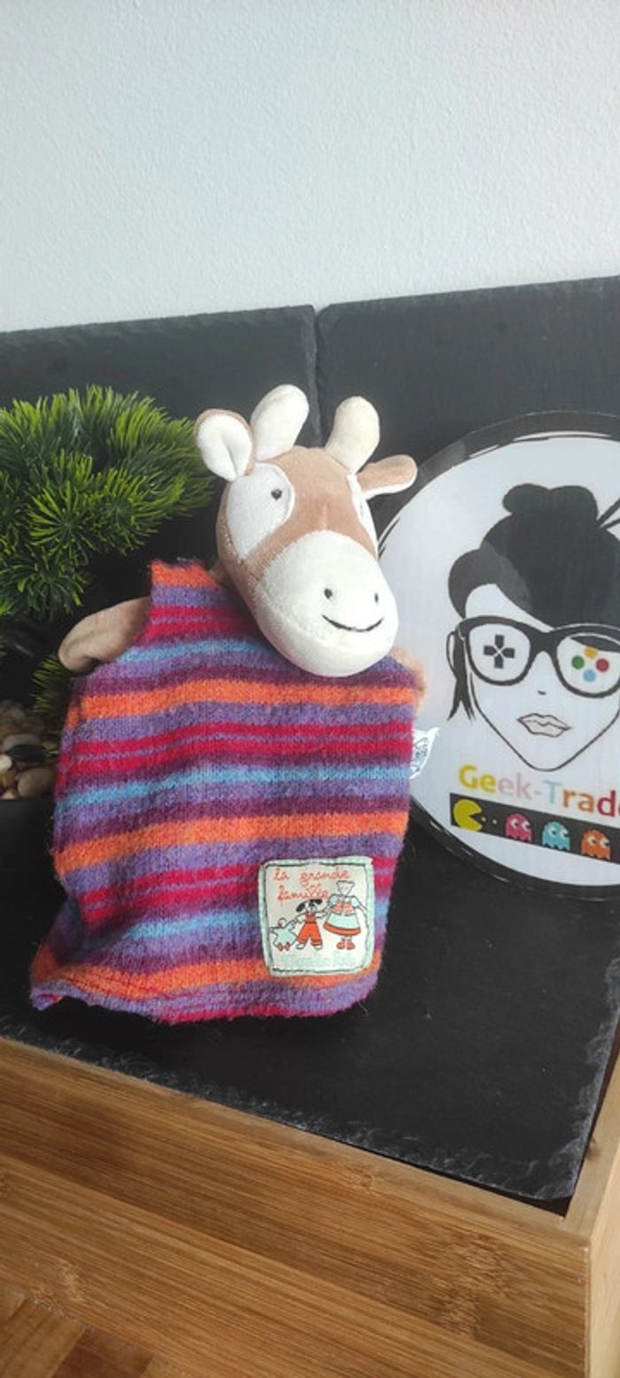 Moulin roty doudou grande famille marionnette vache marron blanc robe violet orange rayé rayure DD001181 Bel état Afin de ne pas abîmer les doudous et de laisser le choix dans l'utilisation de la lessive les peluches ne sont pas lavées avant envoi Description complément : Petit nettoyage à prévoir Vous achetez ce que vous voyez les photos font entièrement partie de la description #geektrademoulinroty Transport : Les frais de transport comprennent les frais du transporteur ainsi que l'emballage pour protéger au mieux votre achat. Chaque achat est envoyé en format colis avec numéro de suivi Le poids du colis est de 500g finit (je ne peux pas faire moins) il peut donc y avoir plusieurs objets dans le carton si vous le souhaitez (contactez moi afinde grouper les frais de port) Référencement : #geektradedoudou #peluche #plush  #doudou #enfan
