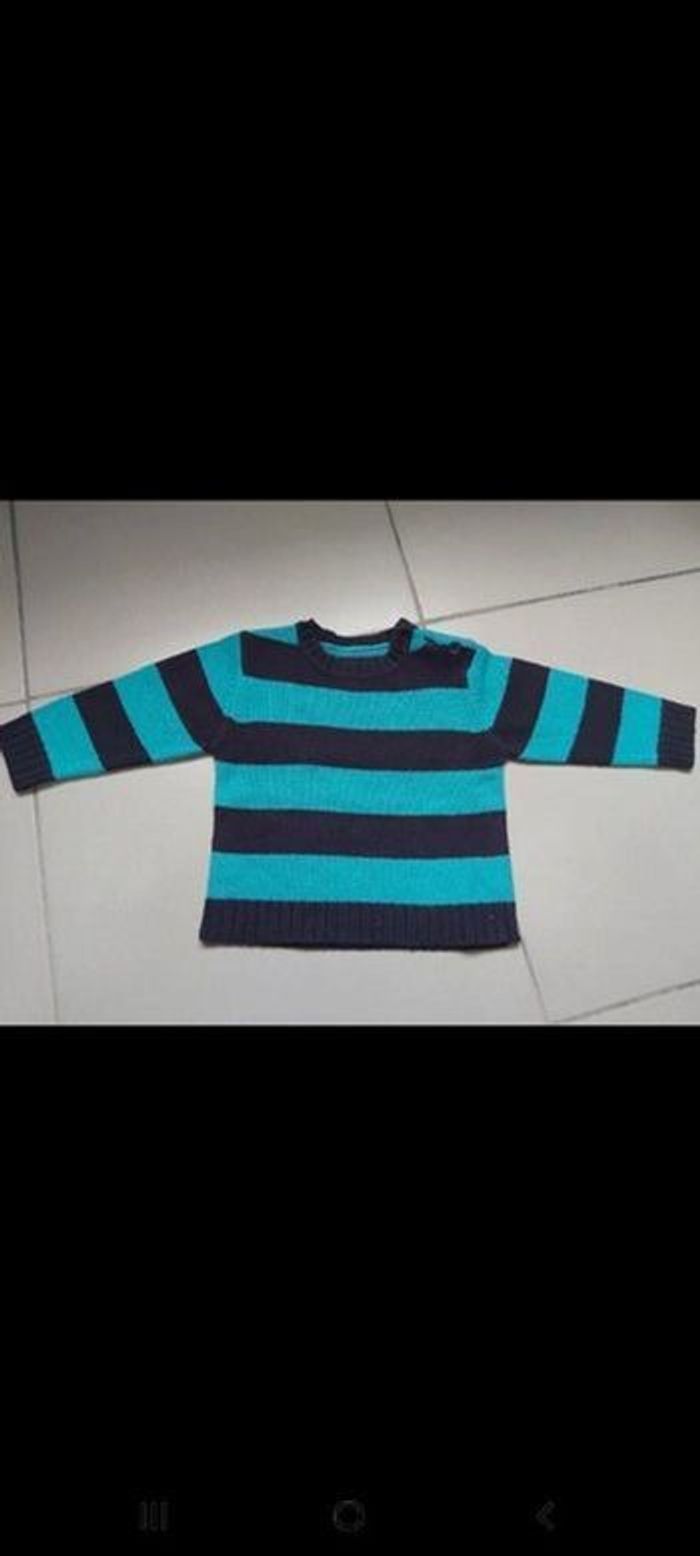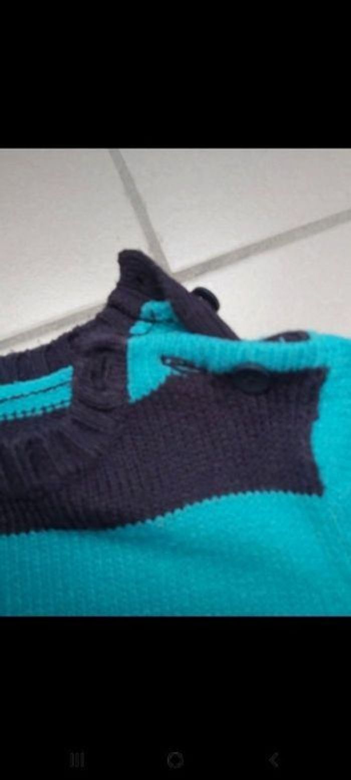 Pull Ouverture par bouton sur le côté du col Couleur bleu foncé et bleu clair Taille 2 ans ( etiquette un peu coupée voir photo)