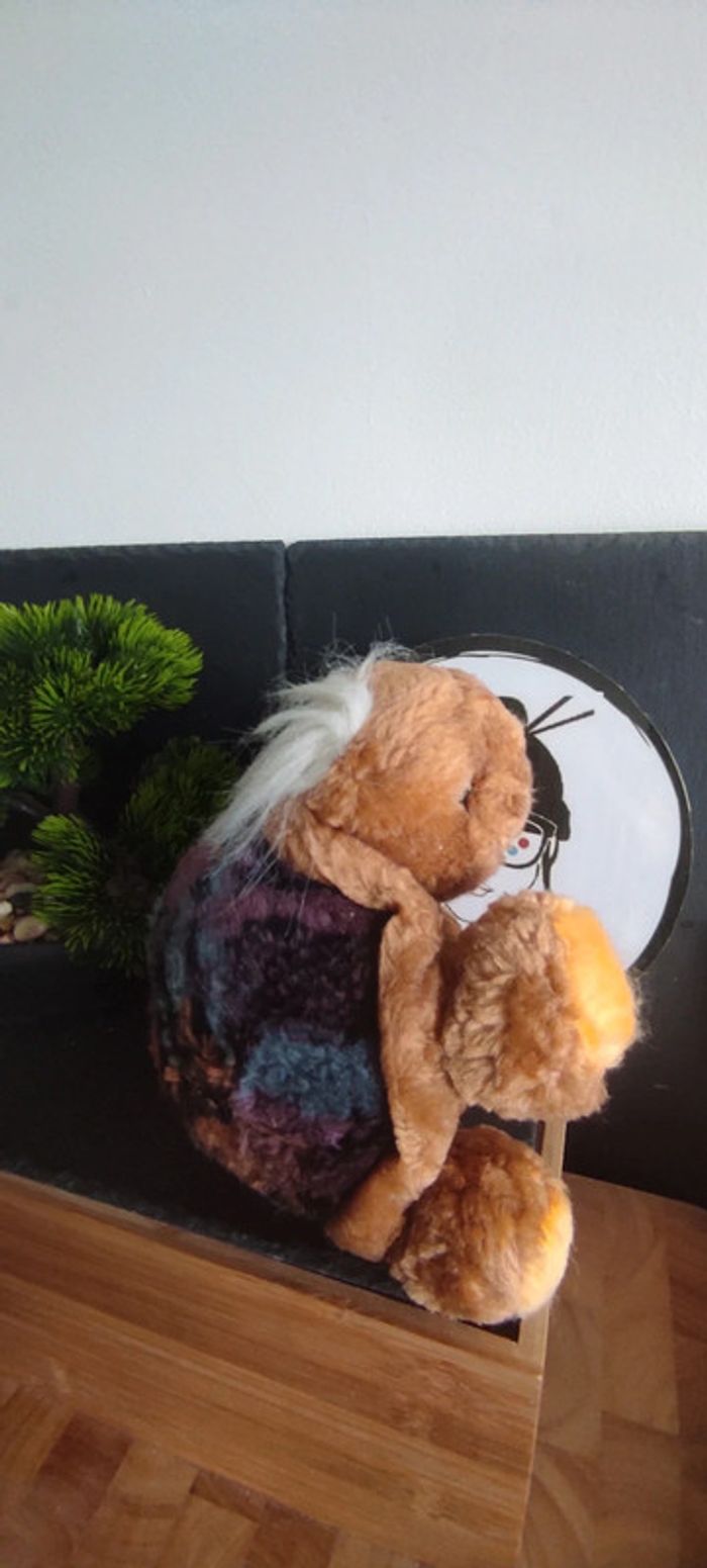 peluche plush tortue turtle ajena ancien vintage marron violet bleu noir cheveux crinière blanc - photo numéro 3