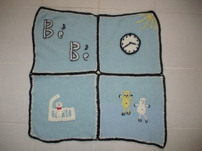 Couverture bleu clair différents motifs environ 1m/1m