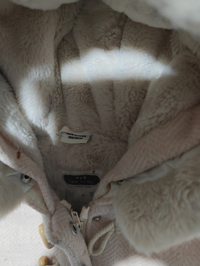 Manteau doublé polaire rose Poches et boutonnière à paillettes Idéal hiver #tapealoeilfille Taille 18 mois Très bon état (juste quelques peluches voir photos)