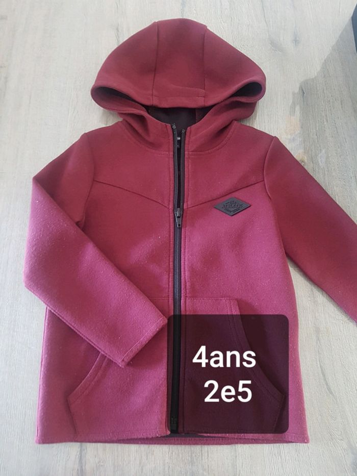 Gilet sweat bordeau un peu de bouloche sur les bras et le bas photo sur demande