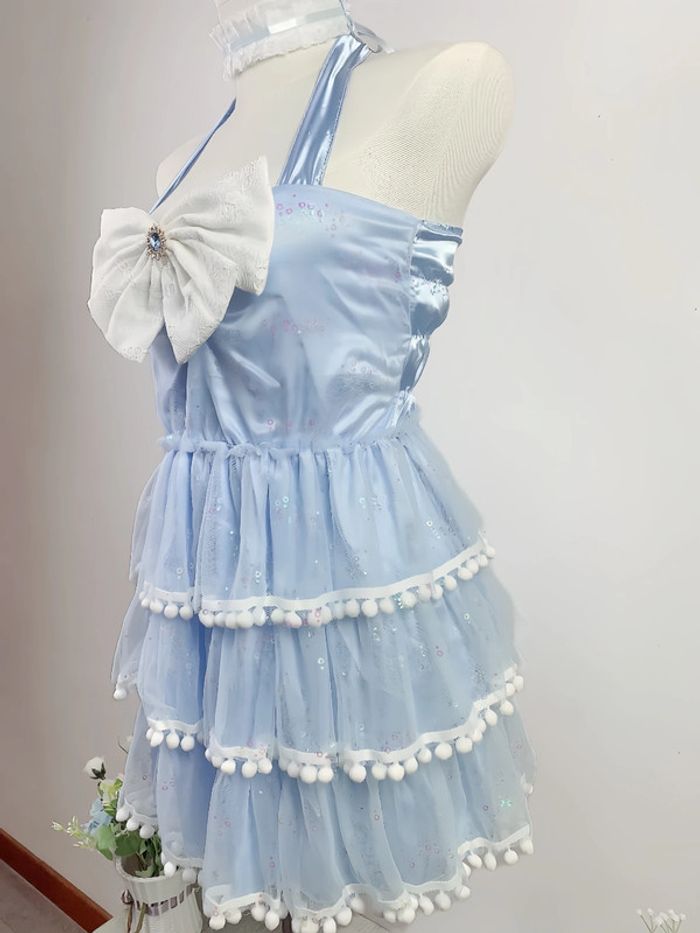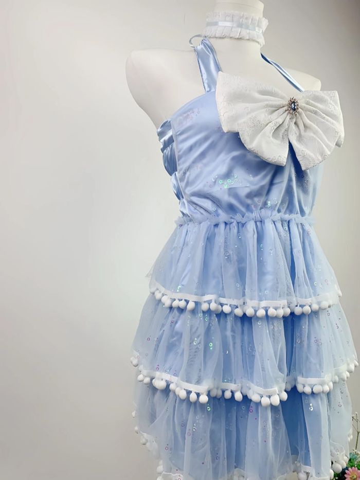 Dress Robe Blue Princess Cute Kawaii Barbie Cosplay Lolita paillettes brilliant - photo numéro 9