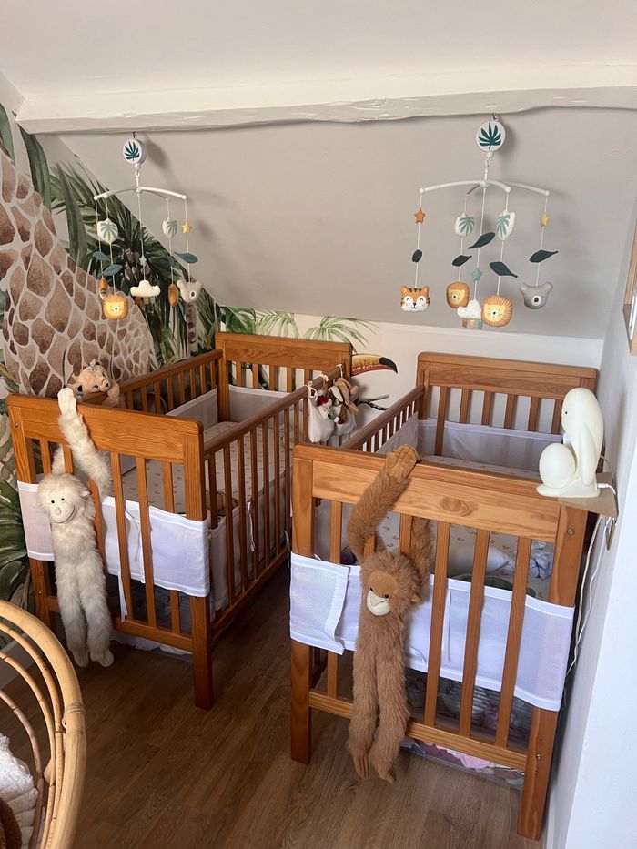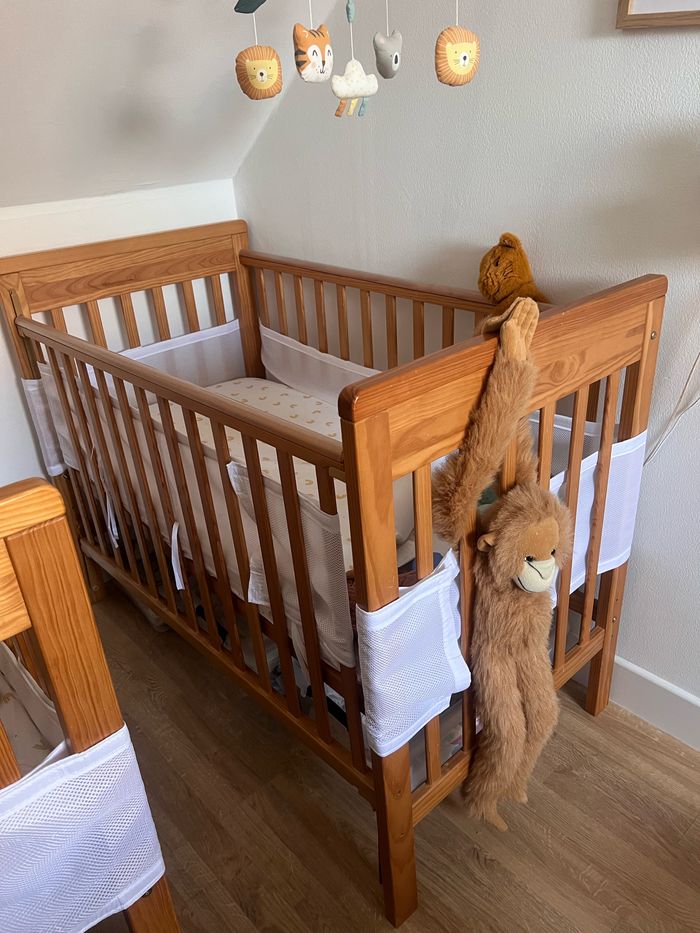 Idéal pour jumeaux Lit évolutif, les matelas peuvent se baisser ainsi que la barrière En très bon état et de très bonne qualité Chaque lit vaut 250€ et le matelas 150€ soit 400€ Je vend le lit + matelas + alèse + draps + tour de lit respirant =120€ À venir chercher sur place ou livraison possible