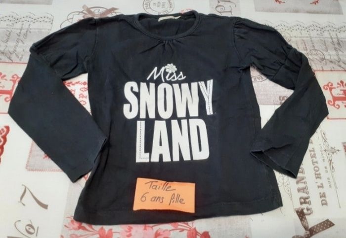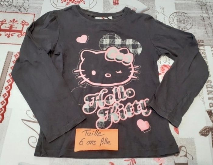 lot de 4 t shirt manches longues 6 ans fille comprenant : 1 noir de marque in extenso 1 uni blanc 1 uni bleu de marque orchestra 1 foncé de marque hello kitty