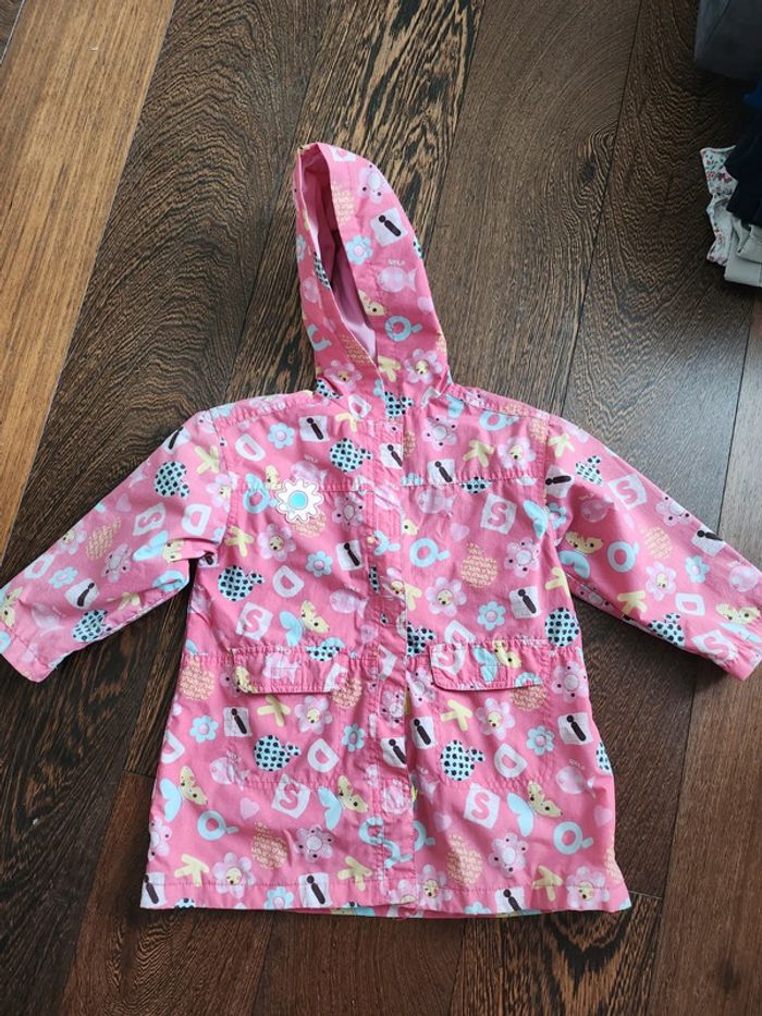 Parka rose à motif "lettres" Capuche Poches 4 ans Fermeture double : Fermeture éclair et scratchs