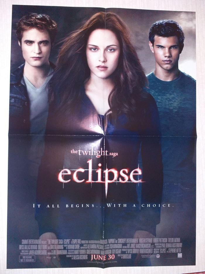 Affiche / Poster / Photo Format A2 (environ 40 x 60cm) issue de vieux magazines, pliage d'origine Double face - ALice au pays des merveilles (Le chapelier fou) - Twilight - Eclipse (Bella, Edward, Jacob) Vintage / collector pour fans de films/cinéma Très bon état, conservée dans une pochette, jamais accrochée Envoi rapide et soigné Pleins d'autres posters disponibles ! #2