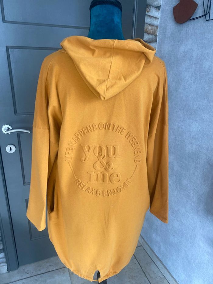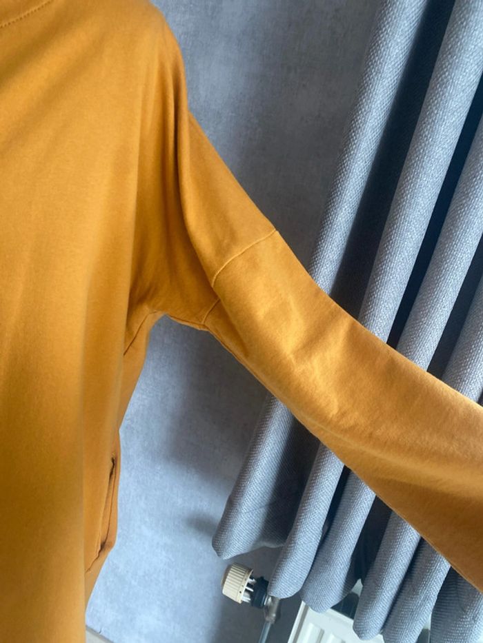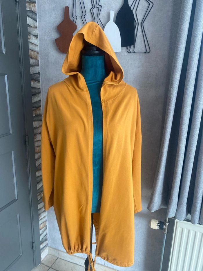 Sympa ce long gilet pour un look décontracté Couleur moutarde 2 poches latérales 95% coton Parfait état